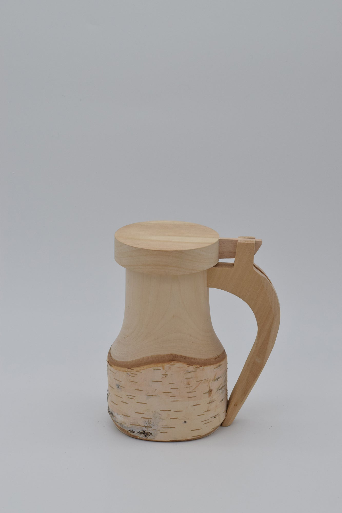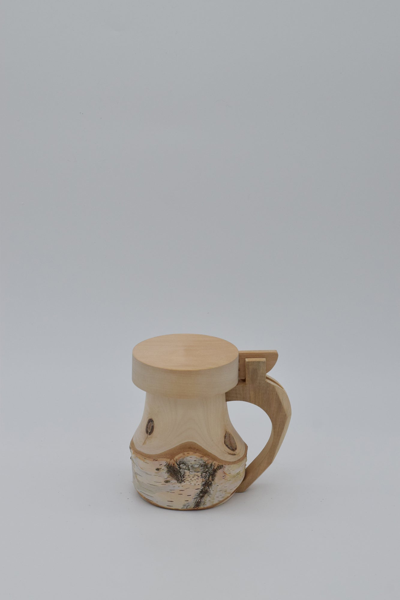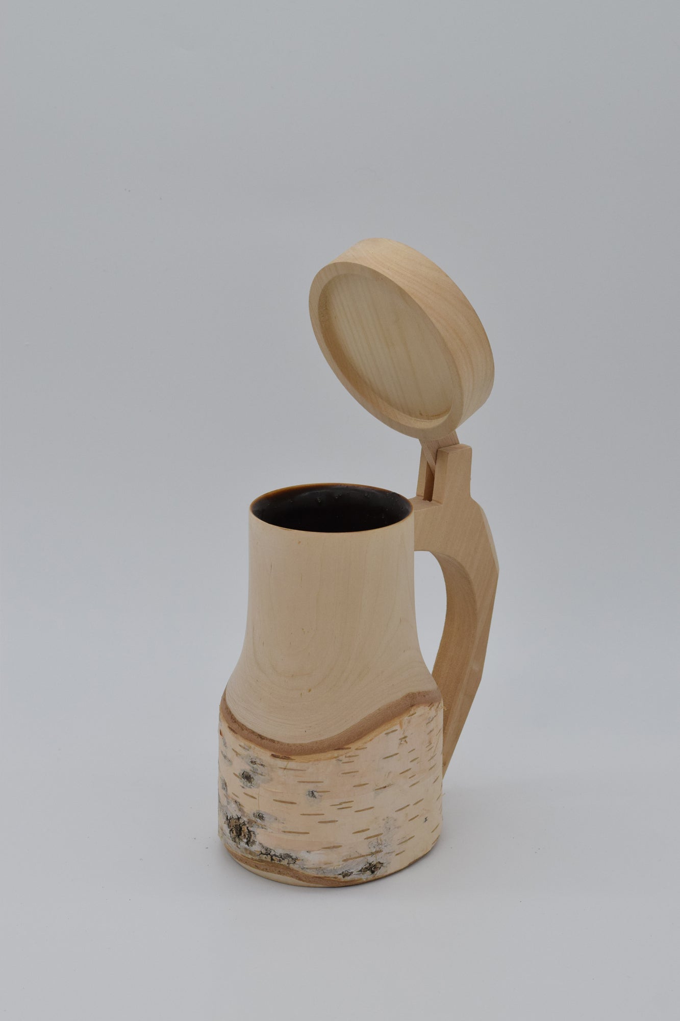 Birkenholzkrüge mit Klappdeckel (innen ausgepecht)