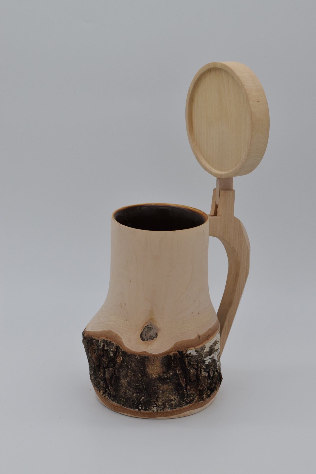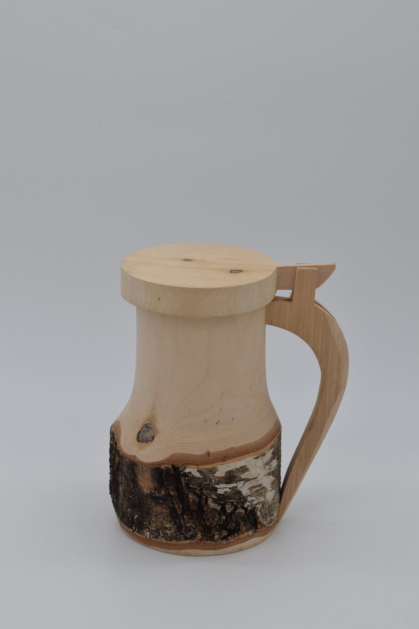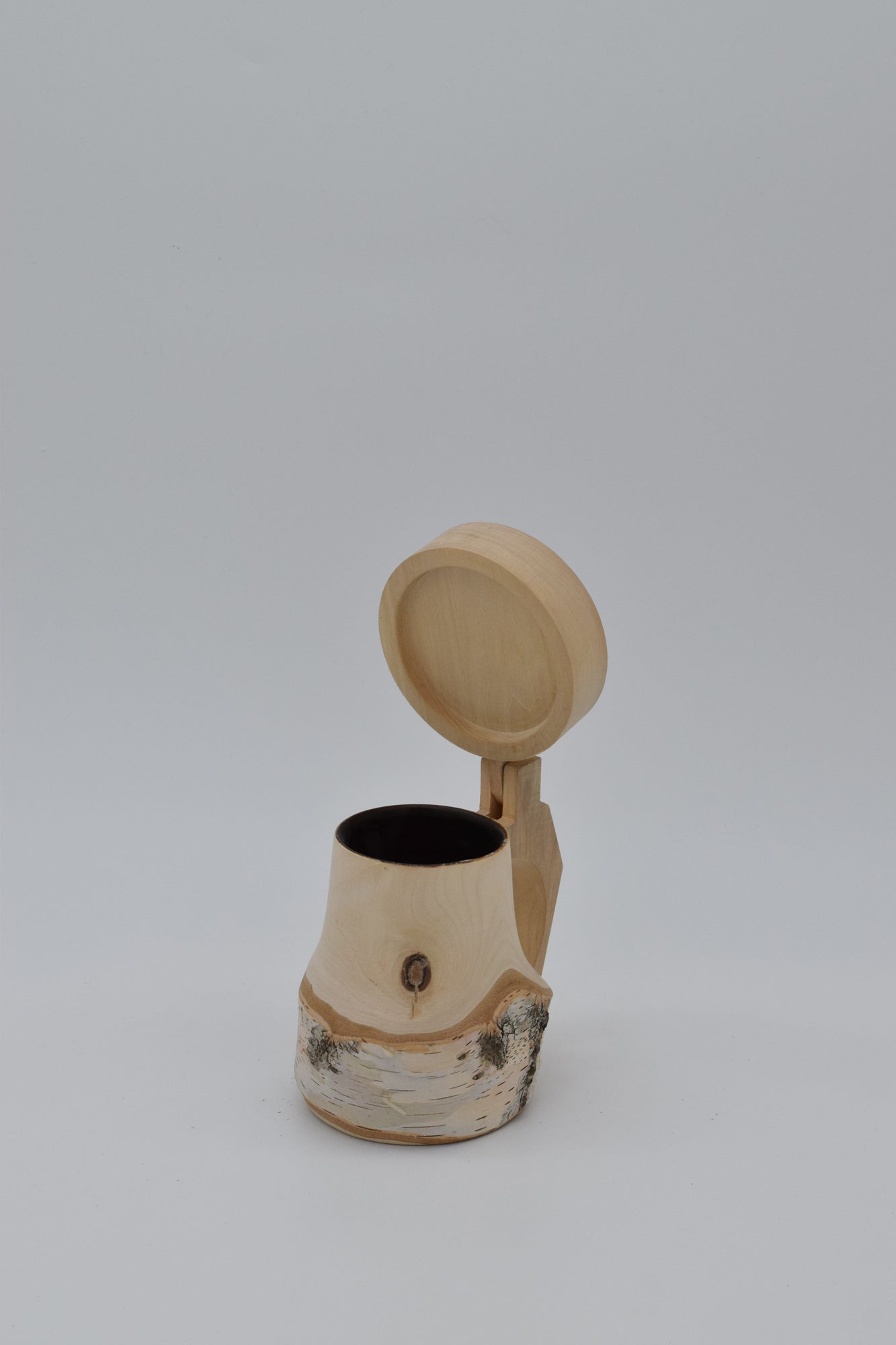 Birkenholzkrüge mit Klappdeckel (innen ausgepecht)